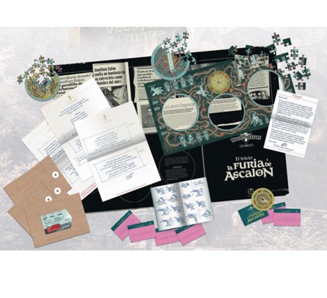 ESCAPE QUEST EL INICIO: LA FURIA DE ASCALON. Escape Quest son una serie de juegos de mesa para adultos basados en las experiencias Escape Room. Los juegos se basan en la historia de Jonathan Eaton, multimillonario y amo de Vestigium Industries que ha anunciado de forma repentina su renuncia. Hay un único sucesor y este será aquel que complete todas las aventuras de Houses of Treasure. La furia de Ascalon es la primera de las aventuras que hay que resolver, esta empieza en Dunleway (Irlanda) donde Jonathan Eaton pasó muchas de sus vacaciones de juventud ya que sus padres tenían una pequeña casa de veraneo. Durante uno de sus viajes, Jonathan de 13 años, cayó en una iglesia en ruinas y encontró El Laberinto y la Tumba de Ascalon. En esta aventura se deberá abrir la cerradura de la tumba de la lanza llamada Ascalon. Para resolver cada uno de los juegos hay que descifrar distintos enigmas a través de la resolución de puzles, jeroglíficos, adivinanzas.. utilizar la lógica y revisar todas las pistas, imágenes y textos que nos ayudarán a abrir la puerta. Cada uno de los juegos es independiente del resto de la colección y puede jugarse una única vez aunque los materiales son reimprimibles para que pueda volver a utilizarse.
