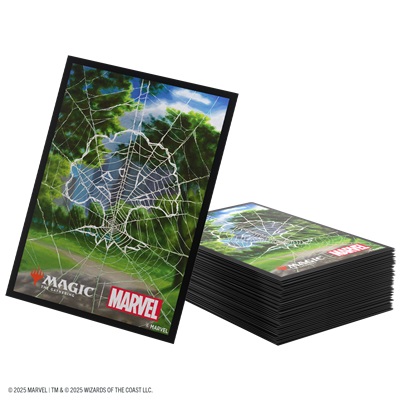 MAGIC MARVEL SPIDERMAN SLEEVES FOREST. Mejora tu juego y protege tus cartas con estilo. Estas fundas ilustradas Art Sleeves impresas a todo color, de gran calidad y con acabado texturizado, son imprescindibles para todos los fans del juego. La textura mate del reverso y la transparencia del anverso brindan una sensación táctil excepcional y una experiencia al barajar increíblemente suave. Cada paquete incluye 105 fundas y viene en un embalaje ilustrado totalmente libre de plásticos con un gancho retráctil.