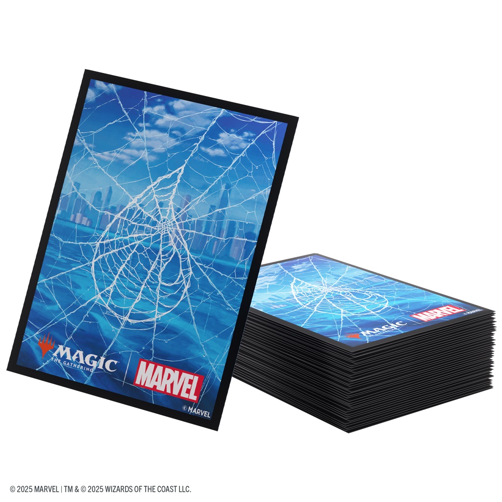 MAGIC MARVEL SPIDERMAN SLEEVES ISLAND. Mejora tu juego y protege tus cartas con estilo. Estas fundas ilustradas Art Sleeves impresas a todo color, de gran calidad y con acabado texturizado, son imprescindibles para todos los fans del juego. La textura mate del reverso y la transparencia del anverso brindan una sensación táctil excepcional y una experiencia al barajar increíblemente suave. Cada paquete incluye 105 fundas y viene en un embalaje ilustrado totalmente libre de plásticos con un gancho retráctil.
